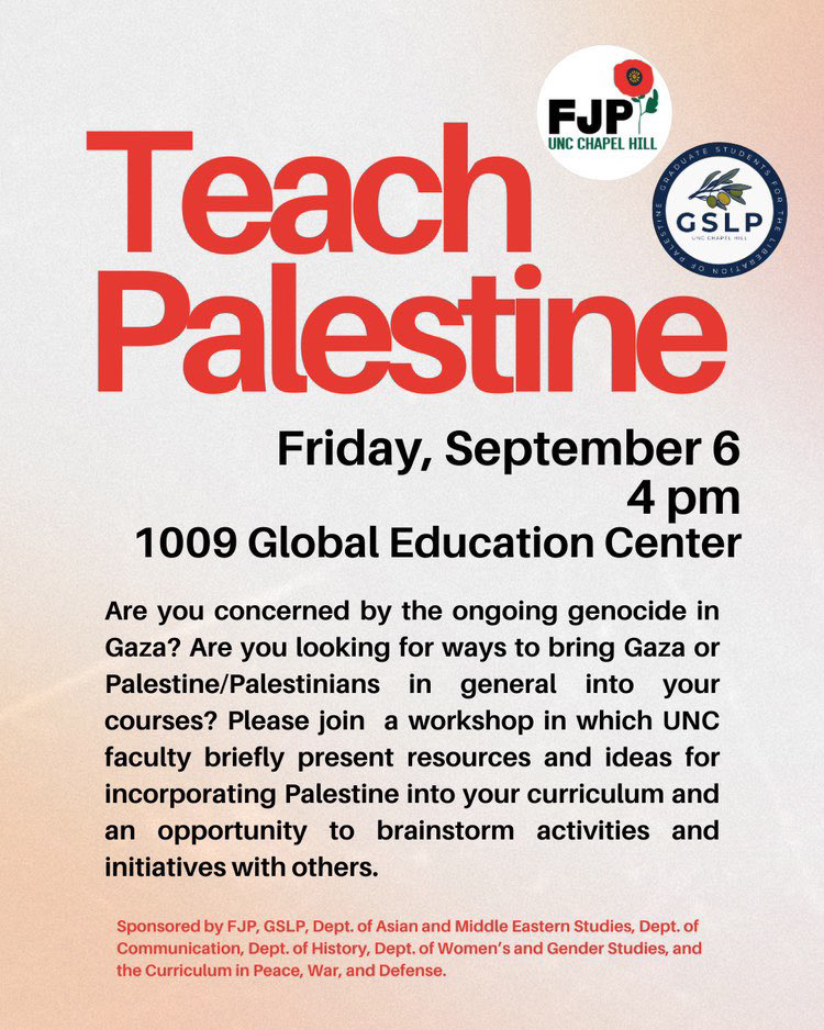 September 6: Teach Palestine with UNC Grad Students & Faculty for Justice in Palestine
