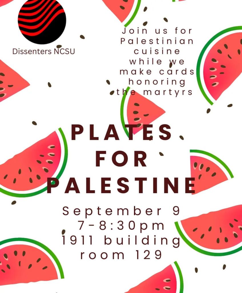 Dissenters NCSU is holding an event TOMORROW to share Palestinian cuisine, arts, and crafts to honor the martyrs. These crafts (plates) will be displayed across NC State’s campus.