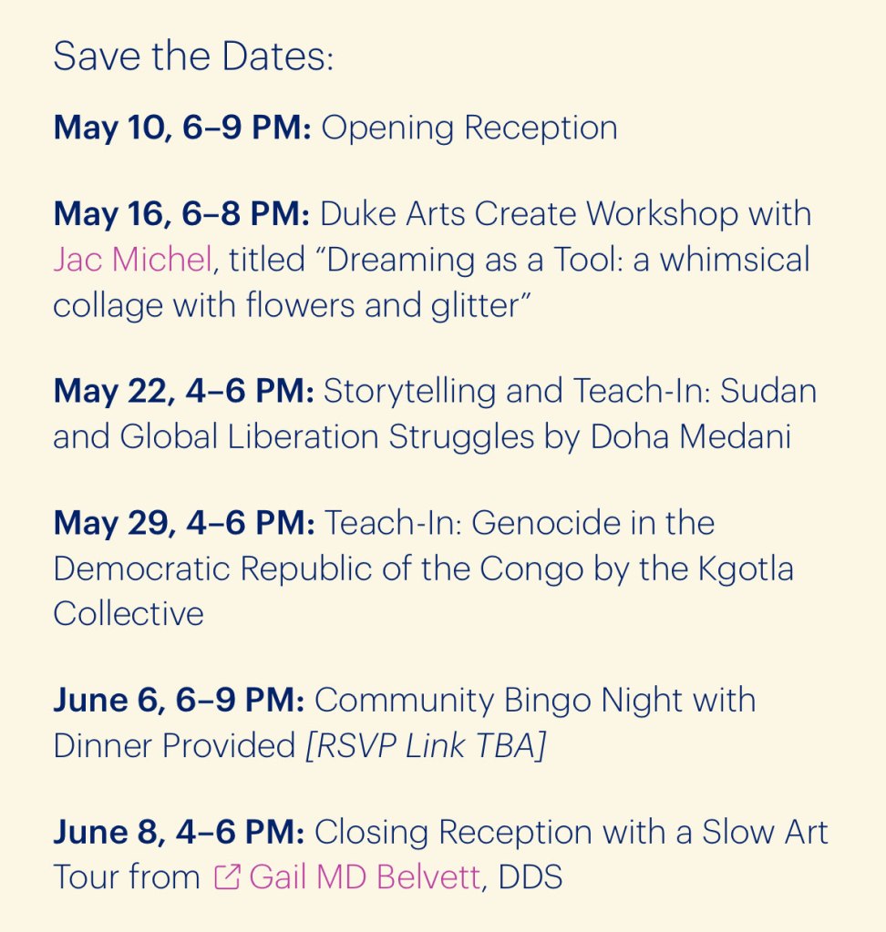 learn more about the exhibition at https://arts.duke.edu/events/exhibition-trajectories-liberated-pathways-through-makeup-photography-and-jewelry/